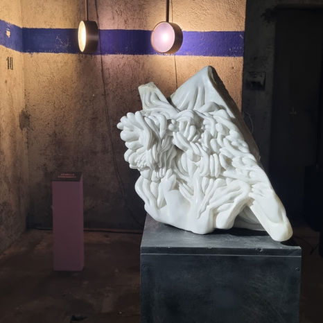 Tra gli artisti selezionati figura Milena Berta, che presenta quattro sculture in marmo. La sua ricerca esplora la relazione tra corpo, materia e spazio, trasformando la pietra in un elemento di riflessione sulla memoria, la resistenza e la leggerezza. Le sue opere dialogano con la dimensione industriale dello spazio, creando un contrasto poetico tra l’antica solidità del marmo e l’architettura grezza dell’ex Ferro Bulloni.